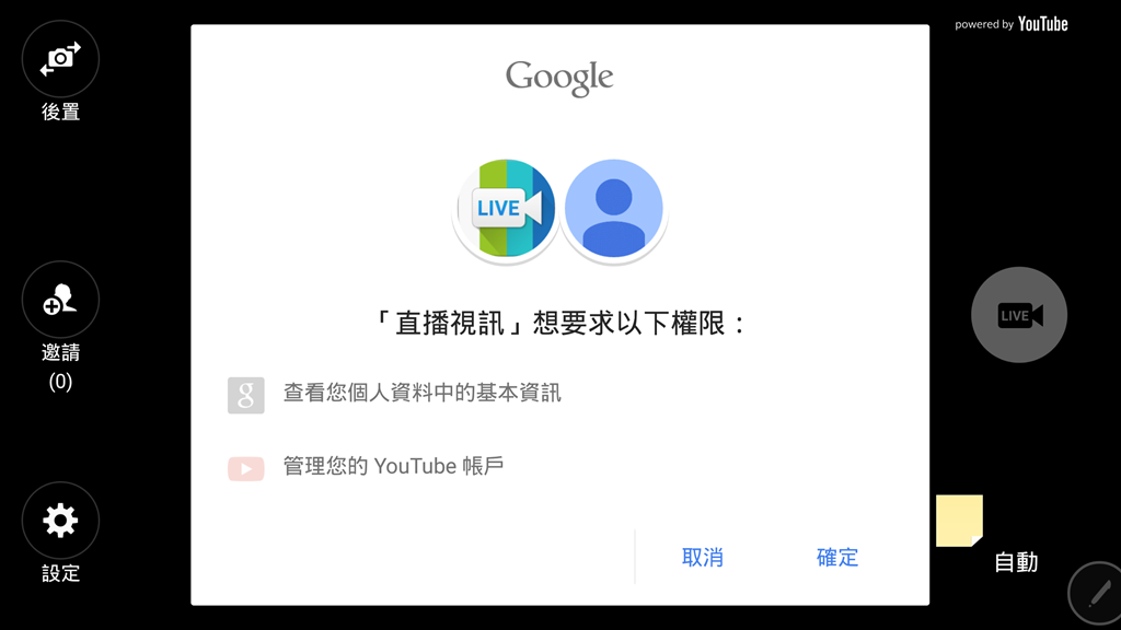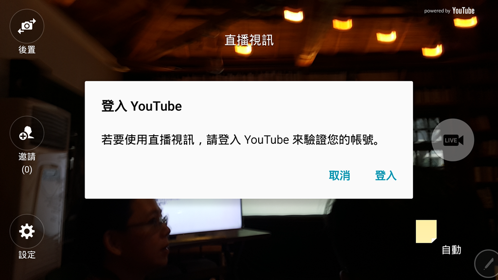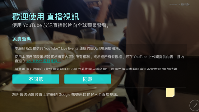 直播視訊需要跟使用者的YouTube帳戶連結。