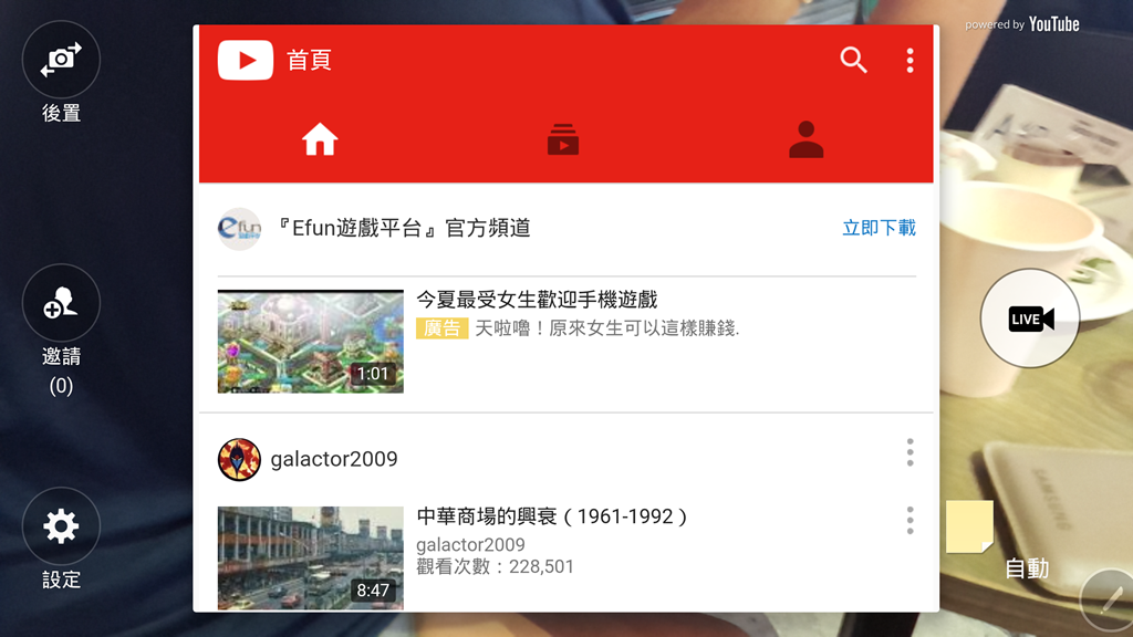 驗證完成後,就可以透過YouTube進行直播視訊,並邀請親朋好友觀看。