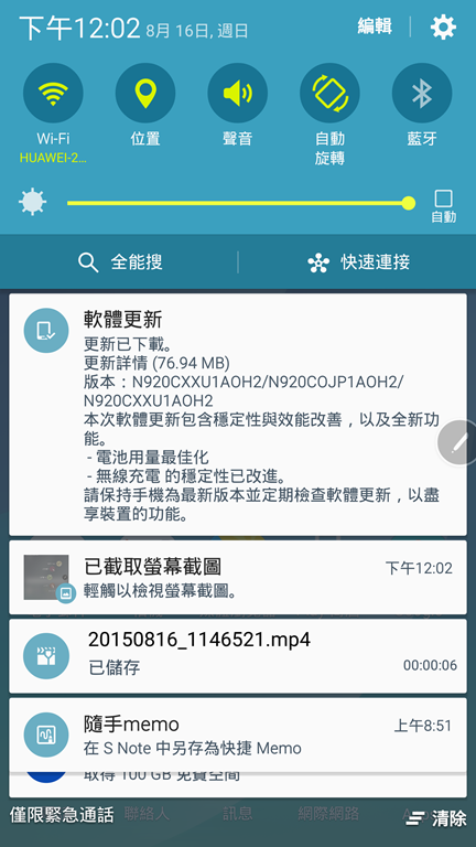 Galaxy Note 5相機模式這次還有內建短片拼貼模式,可以拍攝2~4段最長15秒的影片,然後就能自動合併成單一影片,不需再額外處理。這對要拍攝一些有趣短片分享的使用者來說,是蠻好用的功能。