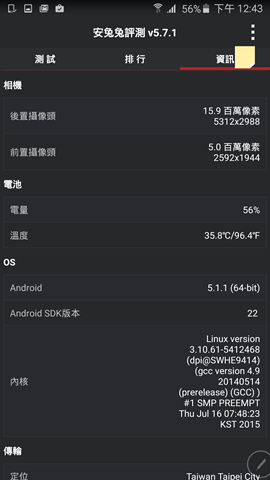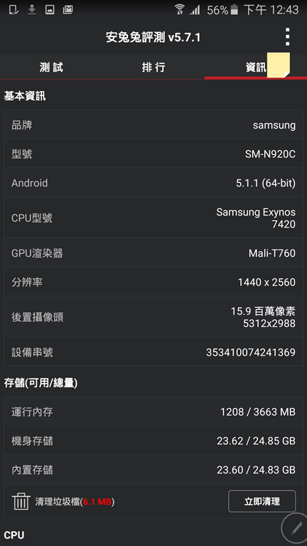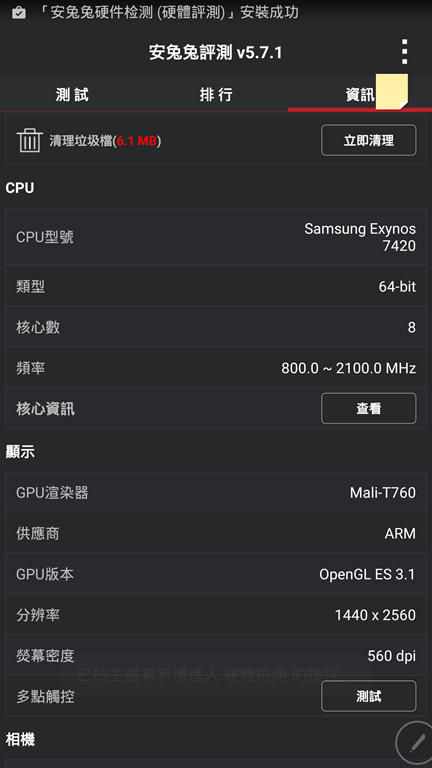最後,利用看一下安兔兔裡Galaxy Note 5的基本資訊。