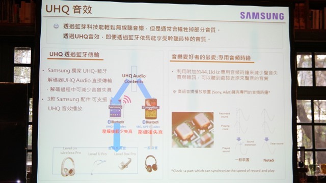 除了主角Galaxy Note 5,現場另外讓我引起興趣的,就是這款支援UHQ音效(Ultra High Quality Audio)的無線藍芽耳機Level U Pro。