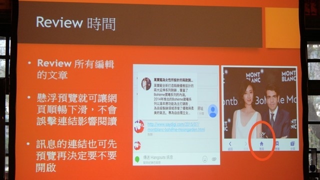 要看編輯的文章時,使用懸符預覽功能,就可以順暢的滑動閱讀,訊息的連結也可以先預覽,再決定要不要開啟。