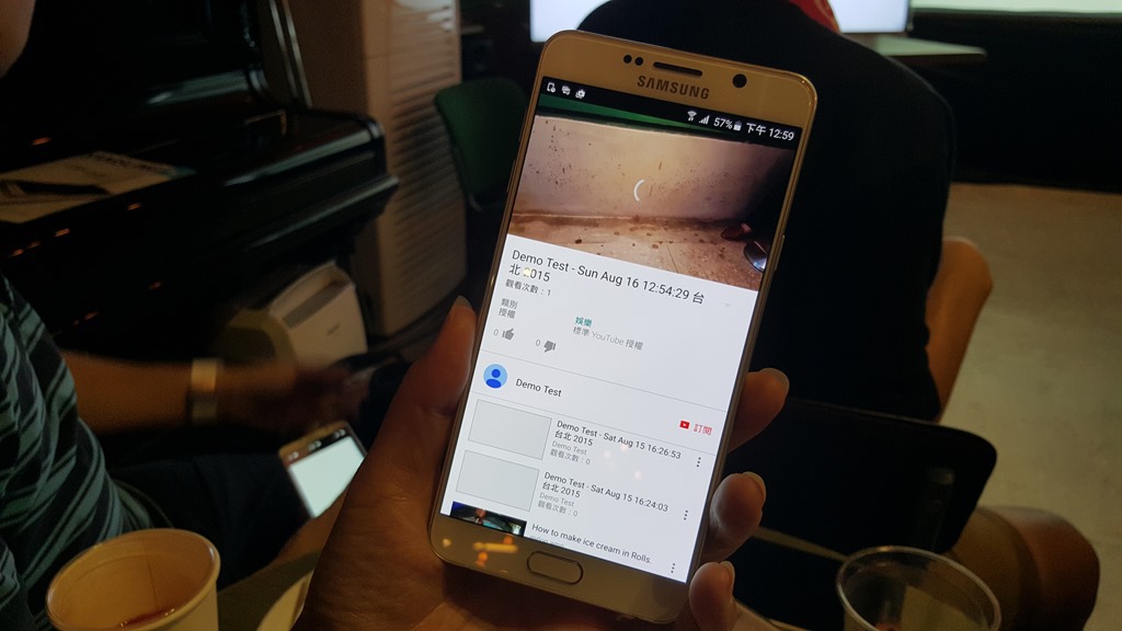 本來,為了要大家體驗直播視訊功能,每一會有一位網友跟潔哥一起進行實境直播,然後透過邀請信件,讓其它人點選網址透過YouTube直播收看遠端視訊。不過,體驗會場地的Wi-Fi訊號不是很好,所以像我們這組,只有透過行動網路的組員,可以成功看到實境直播。
