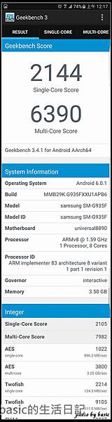 用geekbench3測試得到單核2144 , 多核6390的高分