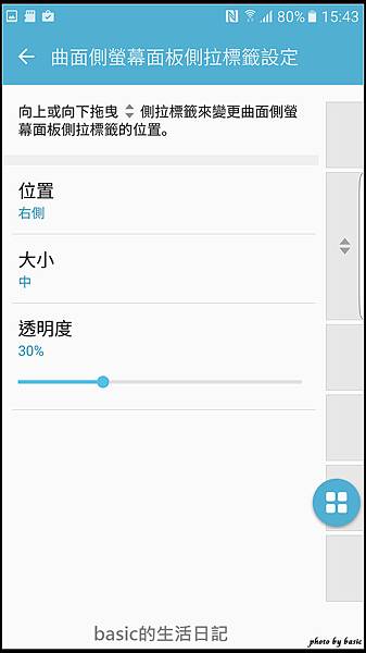 另外這次曲面側螢幕面板側拉標籤也可以設定位置 , 大小 , 透明度
