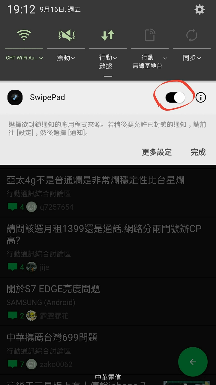 5.快速封鎖通知:當你受到應用程式通知時,可以於狀態列即時封鎖通知,比過往需要到設定裡去找到再關閉直覺多了。