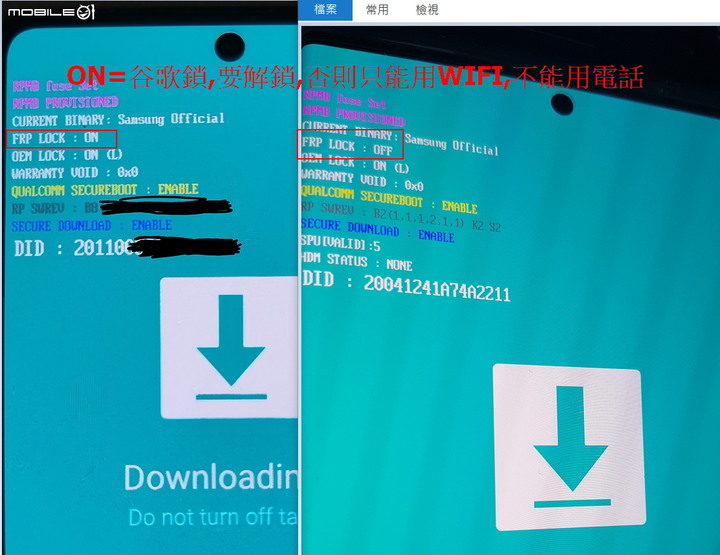 強制重啟方法進入Recovery Mod(Android 11開始要USB連接電腦或Notebook)1_USB連接電腦或Notebook2_長按音量鍵-(向下)+電源鍵保持按住3_手機有反應(黑屏或震動)馬上轉向上按如果是開機界面,証明動作太慢,再來一次4_見到官方Recovery就按音量鍵上或下=移動選擇,按電源鍵=OK雙清=雙 WipeWipe data/factory resetWipe cache partition如果完成開機沒有問題,試試打出電話,不能的話,谷歌鎖上鎖了解鎖方法,到這網下載工具解FRP鎖https://samfw.com/blog/samfw-frp-tool-1-0-remove-samsung-frp-one-click