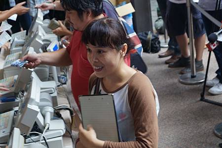 圖3.坐在板凳上手拿扇子的那位美女則是最後的第150人(約下午三點但到現場)