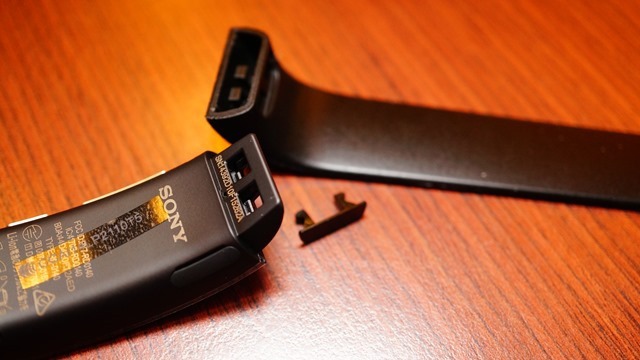 SmartBand Talk SWR30直接將充電的microUSB孔做在手環本體左側邊,出門只要帶USB充電線就可以了。