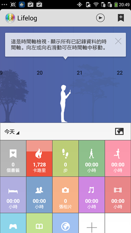 另外,在Lifelog App裡面可以使用者看到12項資訊,而且可以用動畫的方式顯示,我自己滿喜歡這個介面。