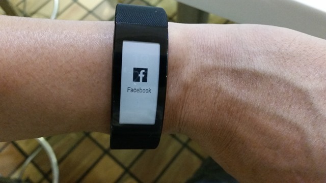 SmartBand Talk SWR30最吸引我的功能,就是支援通話功能。像照片中電話來的時候,透過這個手環就可以聽講電話,真的很方便!