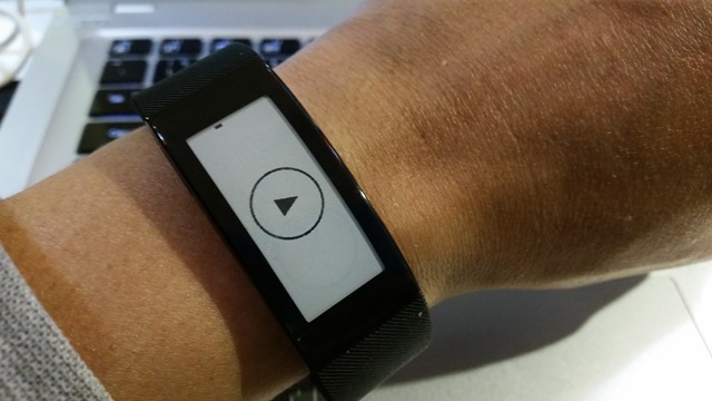 SmartBand Talk SWR30部分功能,像媒體播放器,支援按壓螢幕方式控制(以手環內建的陀螺儀,來感應較大幅度震動)。不過,按壓的力道需要比較大,才能感應到而有後續動作。