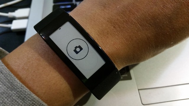 按壓手環螢幕之後,手機上的Smart Camera拍照介面就會出現,接下來再按壓手環螢幕,就會拍照了。