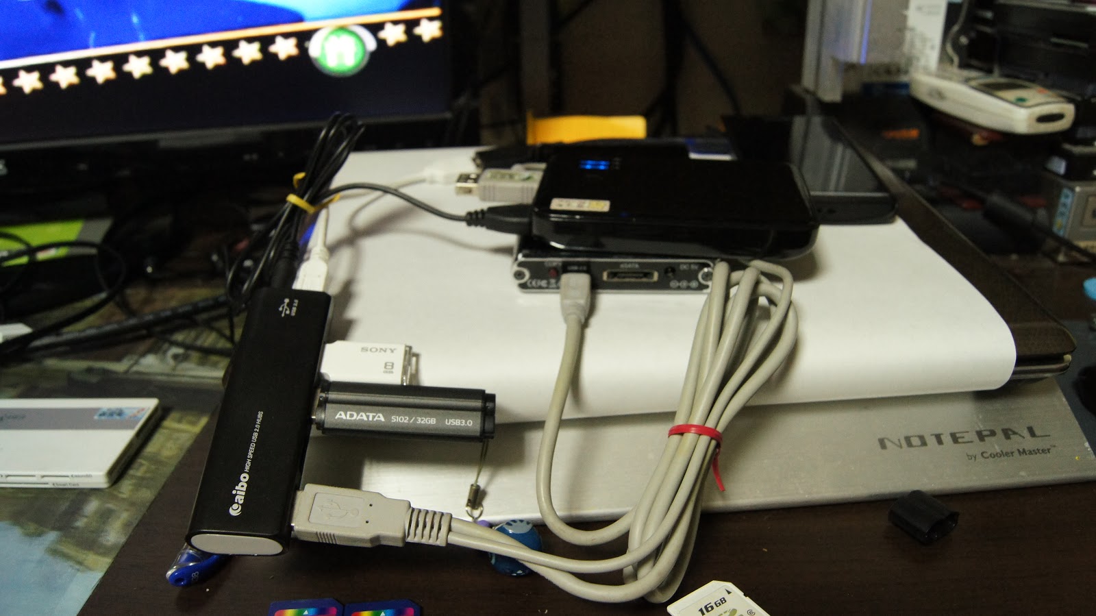 Test5.於HUB上面接上多顆USB隨身碟,這次主要要測試如果用讀卡機,並接上USB隨身碟,在Xperia S上到底可不可以支援多顆外接裝置,如下圖所示。