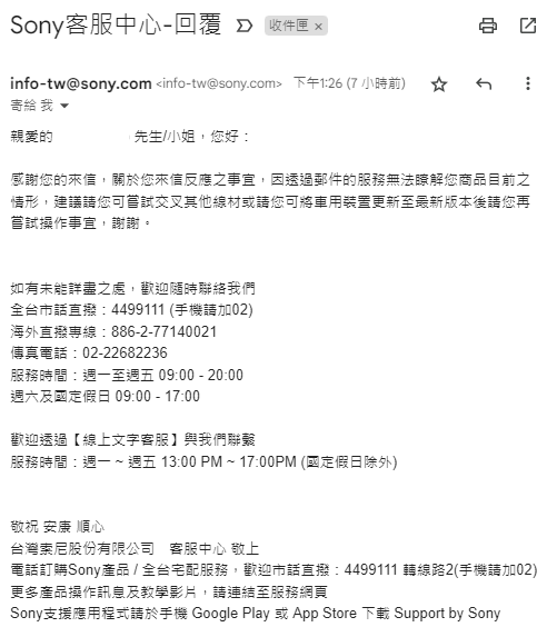 有詢問客服,但顯然客服不認為是Xperia的問題~