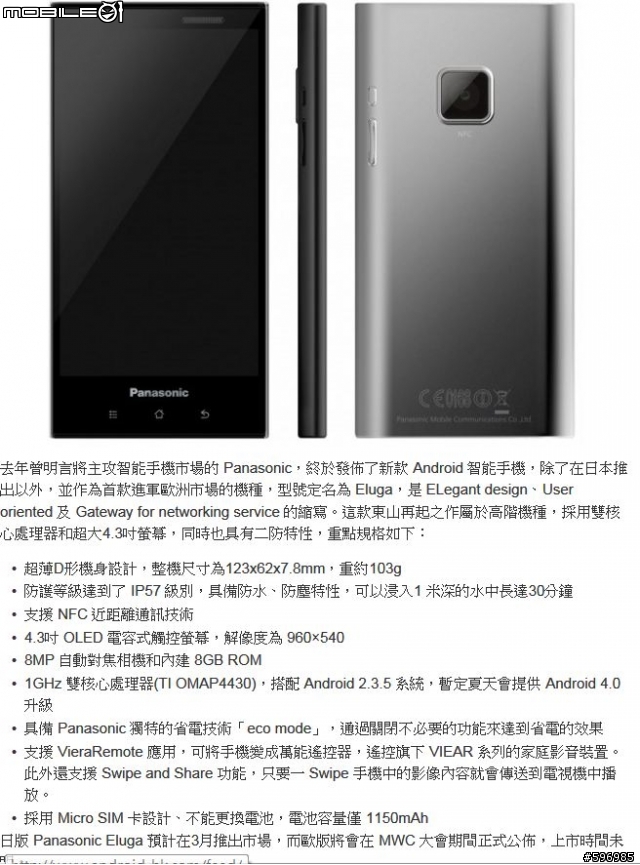 TTW2010 wrote:當然是為了免費宣傳體...(恕刪) +1體驗文已佔據好幾頁的文章版面題外話,似乎Panasonic也及將推出android手機了,不過現階段規格差了一點...消費者又有多一個品牌可選擇....圖片截取於android資訊雜誌(android-hk.com)