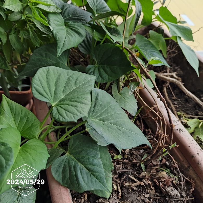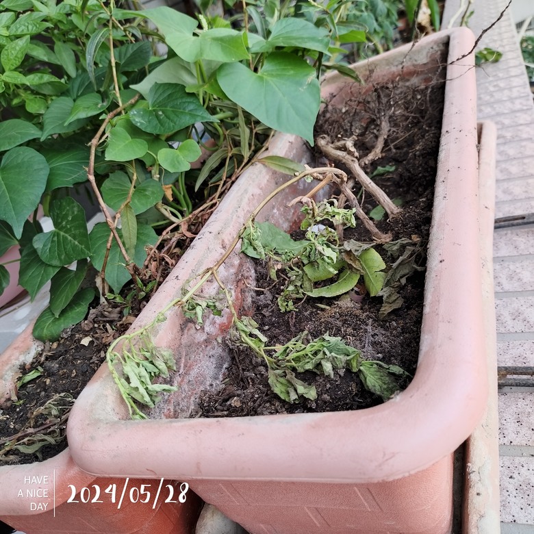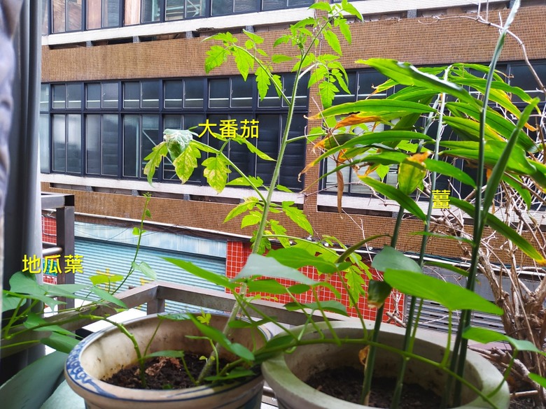 同一盆種了牛番茄,又種了地瓜葉,你就知道我多隨性。