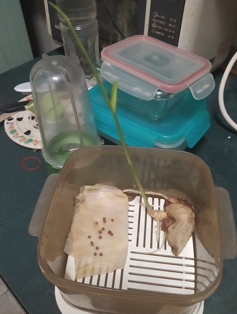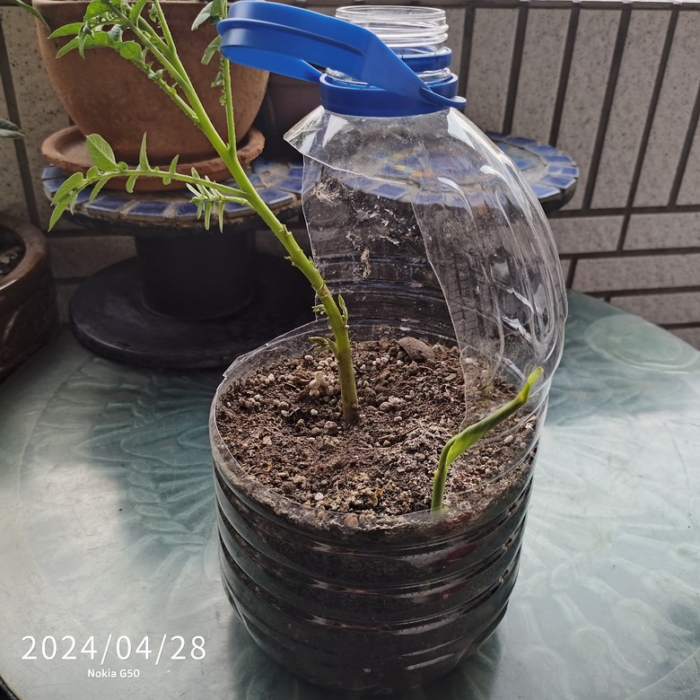 我是拿正要煮來吃的牛番茄,取一顆籽,泡水生根後,種入土裡。