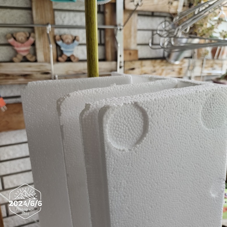 先摘去5/6片綠葉,免於鏡頭視野被遮擋..且拿保麗龍 當拍攝背景。