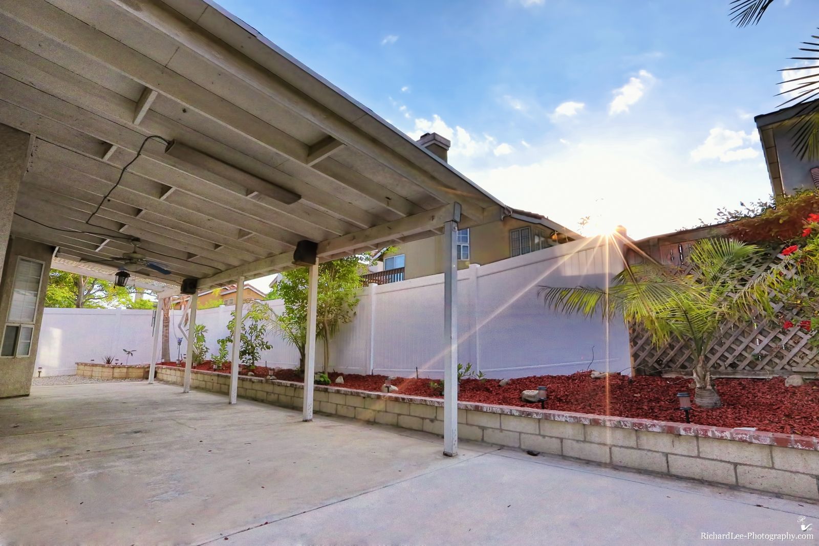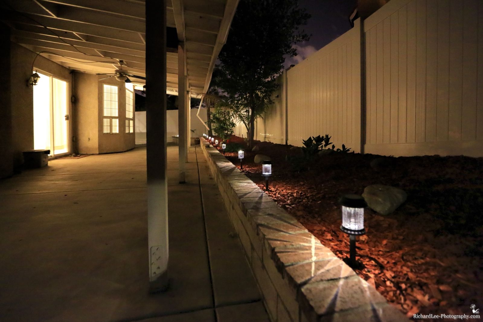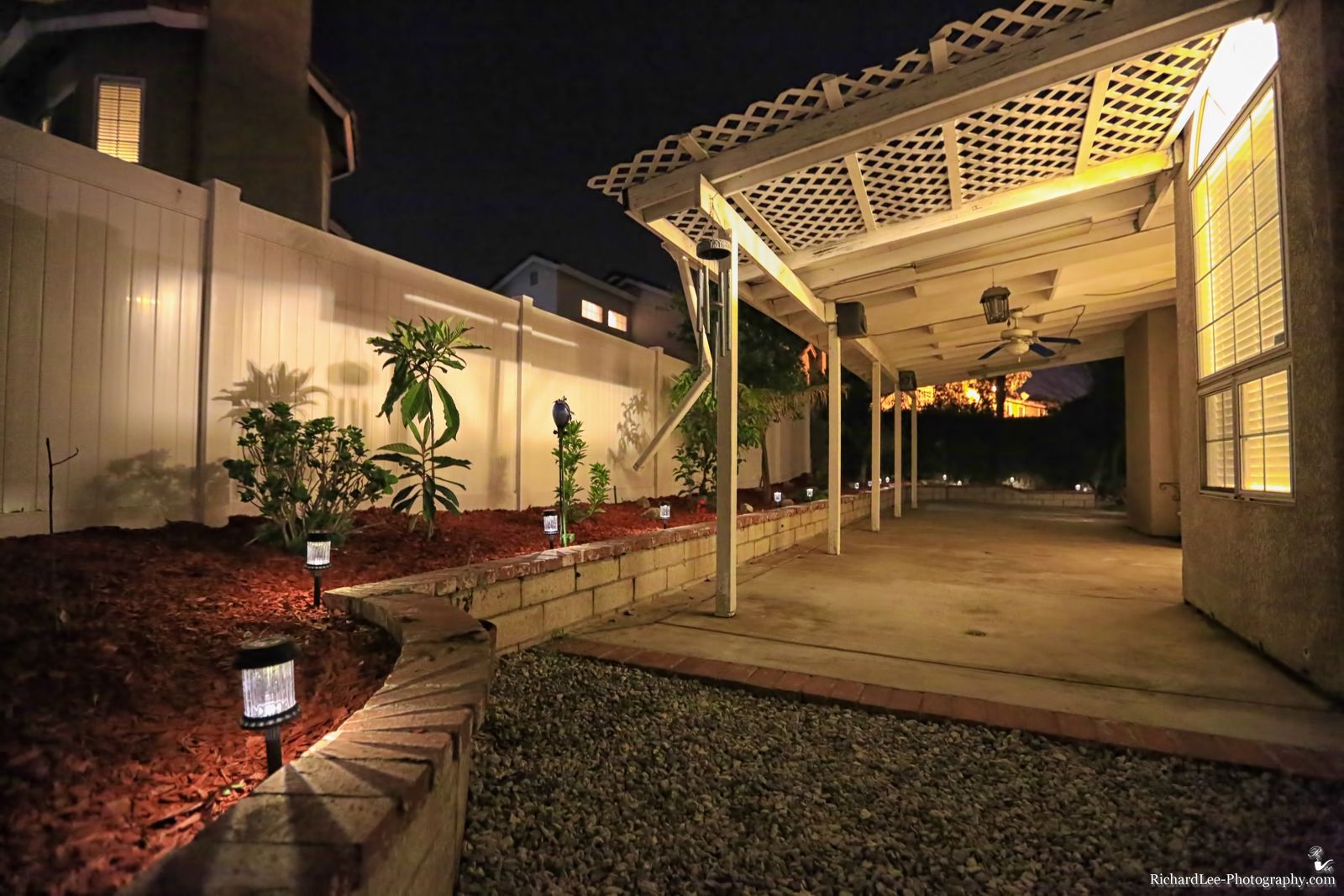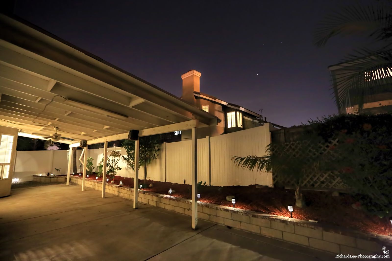 光是屋內的燈光隔著百頁窗出來,與圍牆的反射,後院就有一定的亮度,遮陽棚燈開了之後更明亮。