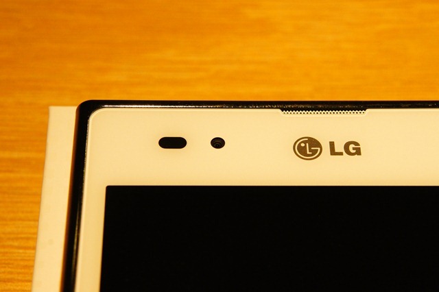 手機正面左上方的130萬畫素的前相機鏡頭、光源感應器。至於在LG logo上方的,則是手機聽筒。