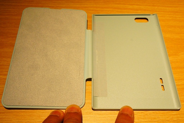 保護套內部的樣子。而在蓋住螢幕的這一面,有裝上一層絨布,用來保護及清潔螢幕。