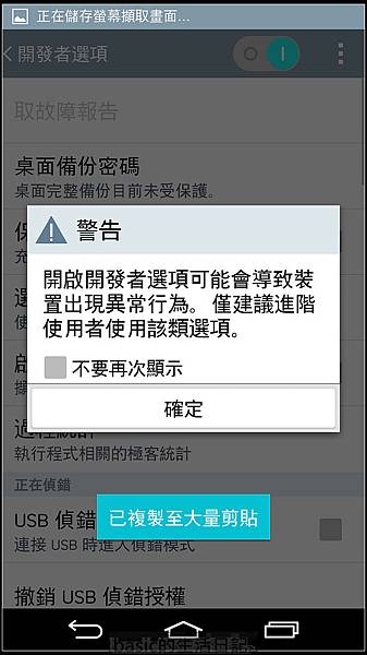 跳出來外面 , 可看到多了開發者選項..再進去開法者選項後可看到這個畫面