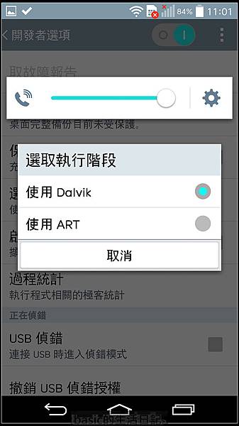 G3是原生4.4.2的手機 , 裡頭也有art選項..