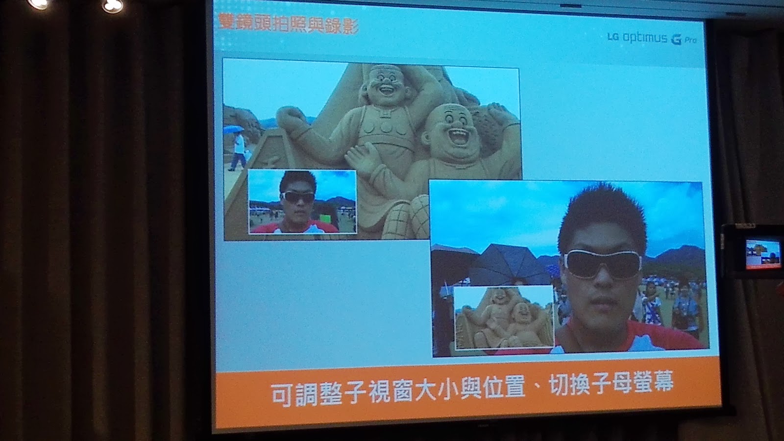 ▲ 雙鏡頭拍攝功能,把拍攝者的頭像加入影片及相片中。最下面為高雄場獲得趣味競賽的得獎組代表者,全組獲得一疊鈔商禮卷,好生羨慕!