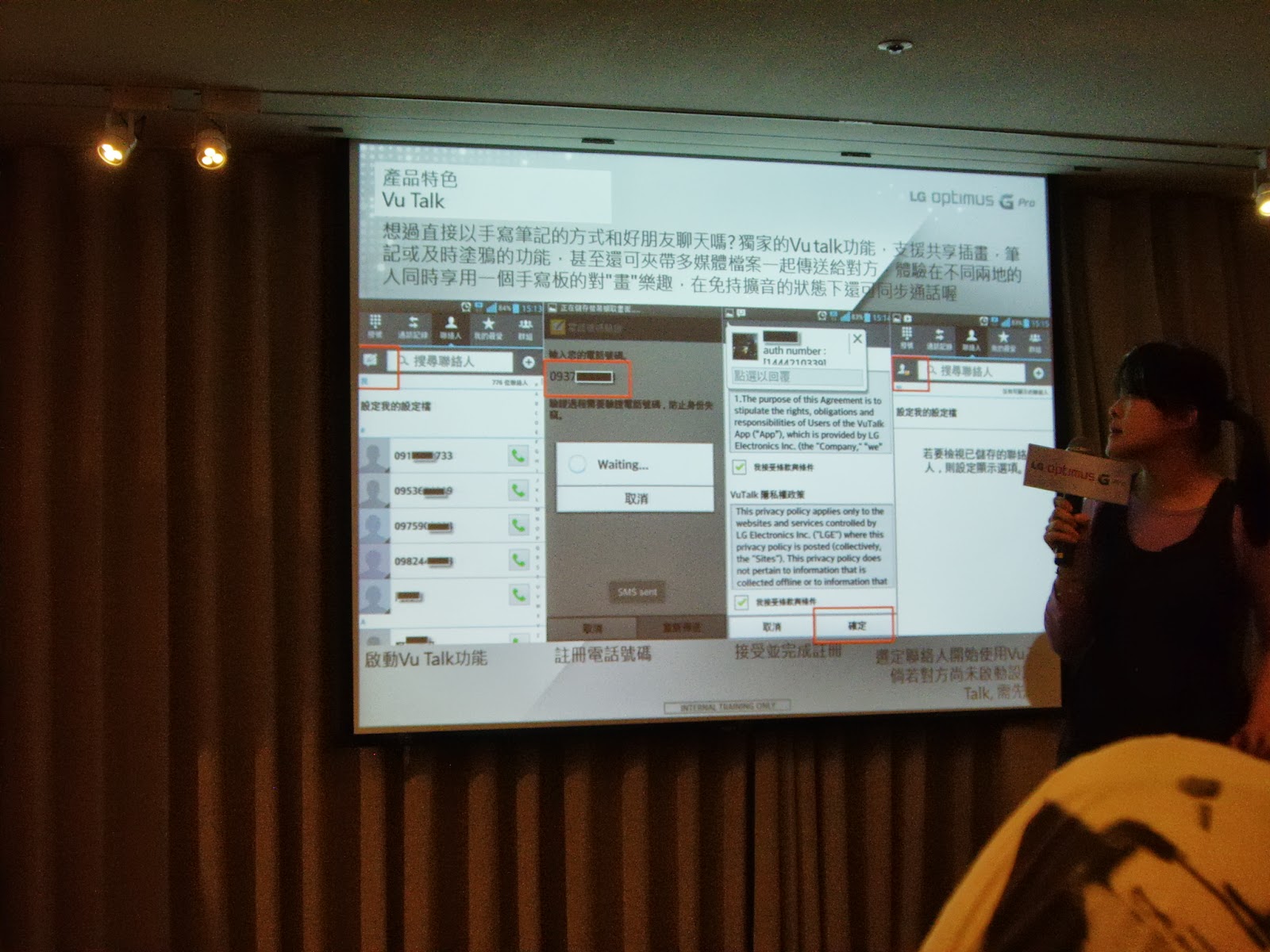 ▲ Vu Talk,需有3G Sim卡才能測試,具有電子白板以及語音對話的功能,Whats Up的競爭品,LG的獨家軟體,在google play上找不到喔,現場測試機器沒有插卡,也沒有時間讓我們一一測試,這是比較可惜的地方。