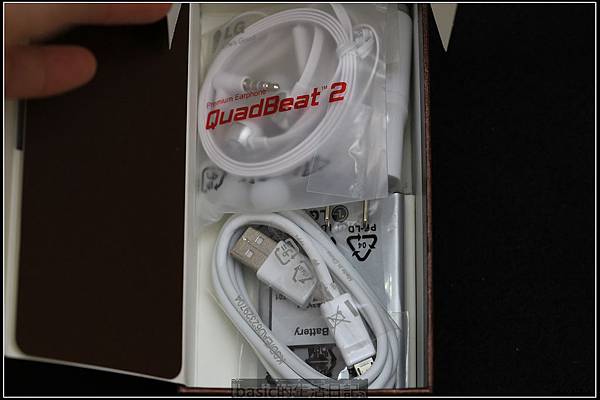 盒裝裡頭有簡易說明書 , 傳輸線 , 電池 , 耳機及旅充(1.8A快充)
