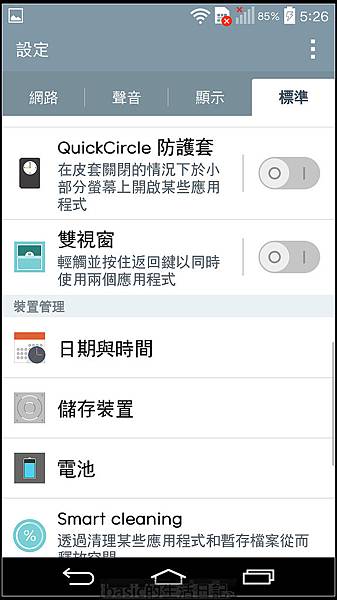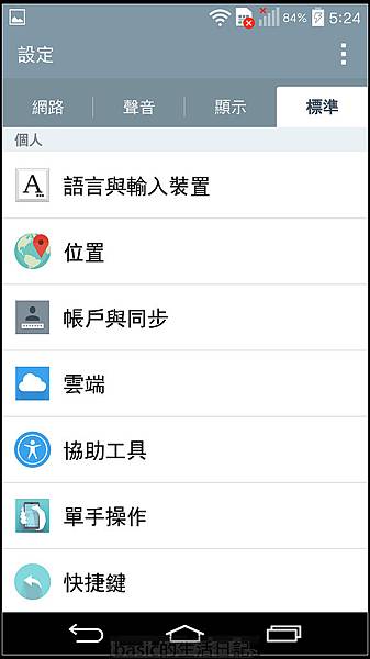 G3的設定選單分為四大項 , 仔細看看會發現其實LG手機的功能性蠻強的 , 個人化設定也很強..