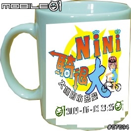 印有妮妮騎很大 logo 以及 (2009-06-02 23:25) [揪團最初的日期與時間]的馬克杯