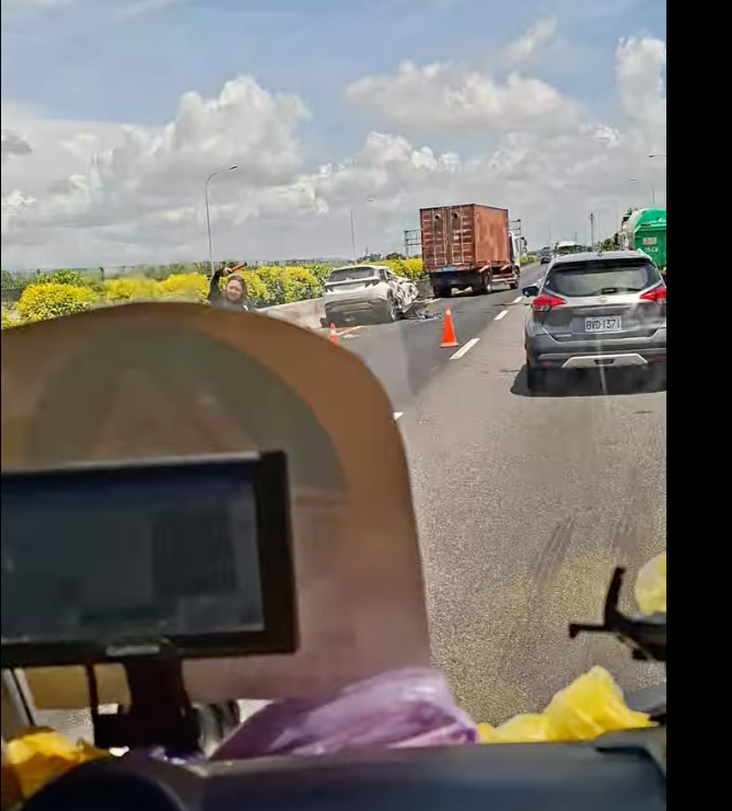 白色自小客車側因為強大撞擊力道,幾乎全毀,車門爛到被揉爛的衛生紙團。這起車禍發生於國道一號南下335.7公里處,自小客車與一輛大貨車發生猛力撞擊,現場一度傳出有人員受困。