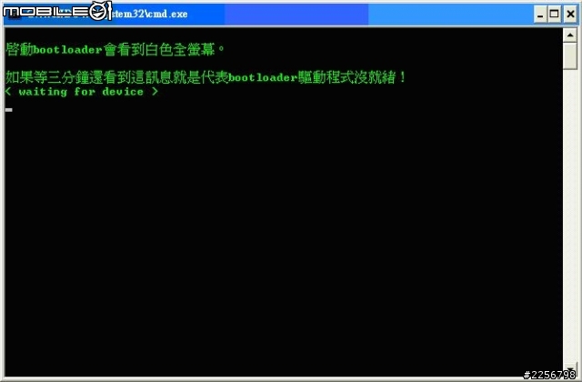 感謝 czh大 所提供的資源小弟在 剛剛 歷經5次"白色恐怖"後 終於刷機成功了今天 拿到機子後 充飽電就開始刷機由於第一次用 觸控智慧型手機 還真是 有些害怕(上一隻是N82)分享一些 刷機時 所遇到的問題剛開始 沒看到這段話 以至於連接不上手機也一定要開啟 System - Applicatons - Development - USB Debugging電腦系統為 XP卡在這畫面很久↓運氣好時,在 機子 畫面變白後 會自動跑出 硬體更新精靈這時打開 裝置管理員 去看會發現有個android的黃色問號(如沒 跑出 硬體更新精靈 請點他右健 選 更新驅動)指到 ient大 的 Vega Lte Ex 一鍵整合驅動(IM-A820L-driver資料夾)圖中的路徑別照著打阿......就能 抓到 bootloader 的驅動了給還沒刷機 或 苦於是XP 系統有同樣困惱的 機友們 參考第一次發文 有 錯誤的 地方 請見諒
