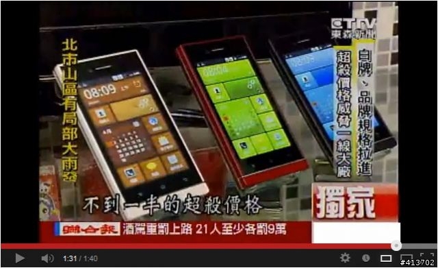 http://www.youtube.com/watch?v=RGUD7rTmVLs除了蘋果、宏達電跟三星等手機品牌,你有新的選擇了,低價的白牌手機,推出新產品,號稱怎麼摔都摔不壞,就連拍照,都有多重3D效果,售價只要5千~8千元,白牌手機大廠有信心,不會輸給一線品牌。不曉得這是那一支手機,因手機摔壞了原本已經要下訂買n002i,結果看了這麼耐摔的手機又打低價,真的太心動了。我決定等下去,直到它出現。