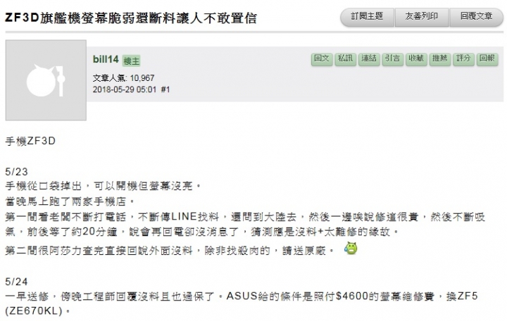 竟然還嫌asus不好....不然你就4600修螢幕就好啦