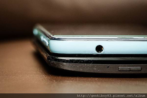 機頂的部分有耳機孔、麥克風以及電源鍵。這幾年大手機因為考慮到握持操作的問題,通常將電源設計在測邊Zenfone 2 可能是因為兩側太薄,所以將電源鍵又設計在頂部的位置。不過還好喚醒或關閉螢幕不一定要按電源鍵,螢幕直敲擊兩下就可以喚醒,這功能最早是從LG G系列開始採用,現在越來越多廠商也採用敲擊喚醒的功能