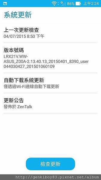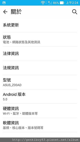 Zenfone2出廠用的是5.0系統,而不是5.0.2,不過一開機馬上就有更新了,這是更新之後的版本號碼。