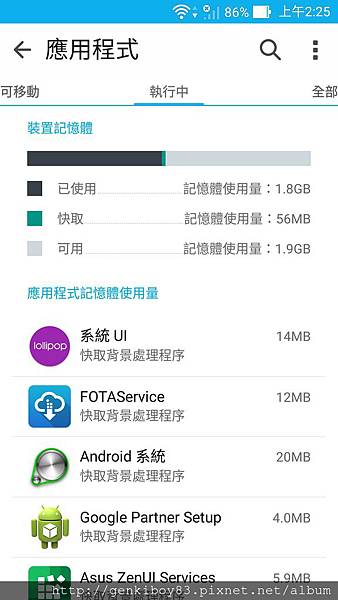 驗明正身一下~這隻真的是頂規的4GB RAM/32GB版本,雖然RAM很大,但系統還是很不客氣先吃掉一半去了