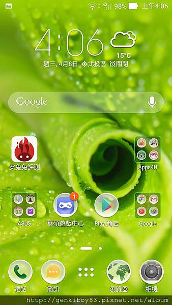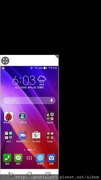 Znfone2因為又變更大隻了,所以也加入了單手模式,可以從下拉工具裡選用,畫面就會縮承擔手可處騎的大小,這功能最早應該也是出現在LG G2裡