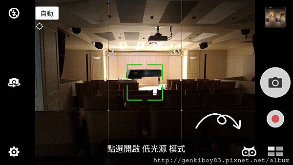 暗光鳥(低光)模式─左邊是用一般模是在低光源的情況下拍攝,右邊是採用低光模式拍攝,可以發現照片的亮度有提升,不過使用暗光鳥模式的話像素會變成只有300萬,原理有點類似Ultrapixel,用比較大的像素去換取足夠的曝光,所以總畫素就會降到原來的1/4(點小圖可放大)