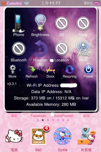 更新後我常用的phone toggle不見了 T ^ T這個toggle我覺得超方便不想要有手機訊號,但想要有GPS和上網功能時可以打開,把iphone變得像ipod touch一樣結果仔細到SBSettings Toggle一看才知道是刻意被移除的要另外安裝所以搜尋SBSettings Phone Toggle安裝後就OK囉!我的iPhone/iPod Touch轉換扭又出現啦!!平常想要收到訊號不想收到訊號