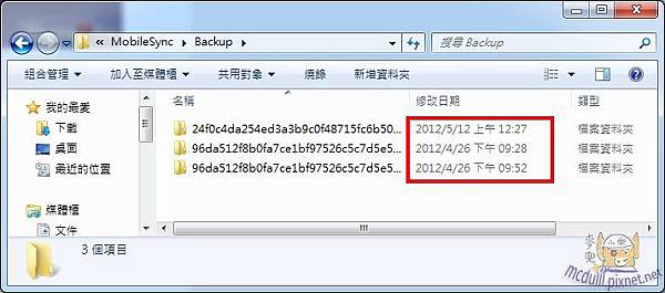 SETP14:請至以下的目錄「C:\Users\XXXXXXX\AppData\Roaming\Apple Computer\MobileSync\Backup」XXXXXXX 所代表的是使用者名稱。這裏會有一些亂碼的資料夾,表示不同時間的備份,你可以試著從最新的修改日期。