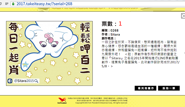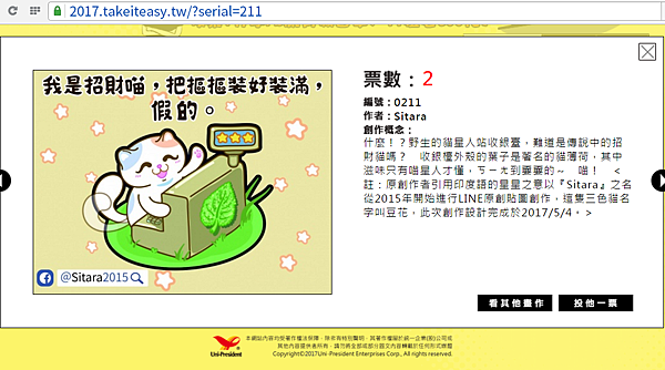 [個人原創貼圖]星躍兔&白小熊&幼幼貓 - 療癒大字貼(夏季) 創作分享(20170625上架)一、毛茸茸的兔子、貓和小熊的大單字貼圖很適合拿來玩,日常溝通的基本用語也能順暢使用~二、收錄實用的鄉民流行用語間的愛恨情仇還有不可或缺的每日問候也有粉絲希望☆Sitara持續畫充滿正能量的用詞,或是更多動物的貼圖。這次單字貼圖在繪製除了單字本義外也能搭配組合喲~三、超過120種意思的組合豐富到上百種情境及字義表達,夠實用吧?至少120種意思組合,相當於3組貼圖能用耶~簡答派或正常派甚至是疊字派的愛好者都適用,喜歡療癒小動物的朋友也很適合喲~儘管濃縮40張單字精華已經讓☆Sitara很糾結了,應長輩要求還是擠進2張節慶賀圖。四、應景的夏季必備賀圖第一款是慶生賀圖↓這蛋糕在畫草稿時☆Sitara順便想好口味囉~蛋糕體是清香檸檬表層淋上70%濃稠的巧克力醬,白小熊浸泡的是純抹茶浴。蛋糕表層用藍莓點綴,蛋糕體外用草莓裝飾,星星形狀的生日祝福則是起士外皮內層是柳橙口味的蛋糕。內層搭個水果布丁就更完美了!光用想像der就覺得好好吃~另外一張賀圖是父親節der不管是準爸爸還是孩子都上學的父親們,為了養家餬口通常早也操勞晚也加班,在父親節這天給爸爸這張再適合不過啦!大致介紹到這裡,還有更有趣更好玩的組合等你去挖掘囉~不得不說的是,這次繪製中途跑去參加競賽,發現每天想圖梗的插畫家真的超厲害~☆Sitara腦細胞燒乾一周了才完成三張,結果沒入圍但覺得這次練肖畫是很棒的經驗,也很感謝有投票支持的粉絲~P.S.上面這三張都是一開始的票數,活動結束時的票數跟網紅比起來當然是不夠看的,但不怎麼樣的時期誰沒有過勒?不知道是不是周年慶的關係,這次靜態貼圖審核審了6天才通過,這和以往送審經驗多了好幾天,一度以為是不是又踩線被退稿說。因為這組貼圖中用了一種不確定會不會踩線的梗,看的出來是什麼梗嗎?希望這次分享的作品能帶給大家實用好玩的療癒體驗~ 本創作分享無連結,並引用官方圖片或資源。多謝看完的大哥大姐阿公阿嬤兄弟姊妹們啦~P.S.我除了努力維持月更新作品外,也經營FB粉專有興趣的朋友歡迎來玩囉~