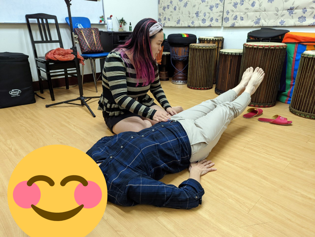 ▼還可以把腿抬起來感受到下腹部出力,唱歌的時候也要用這裡出力,多做幾次讓身體深刻記憶