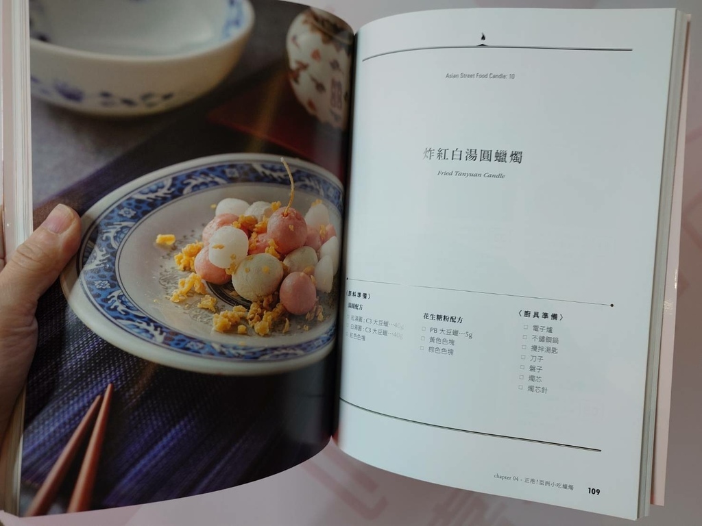 這本工具書擬真食物造型蠟燭:媽媽說不可以玩食物,但這裡可以!用蠟材做出32款逼真美味好看又好玩,多種食譜推出可以美美又好玩的擬真實物造型蠟燭,像是炸紅白湯圓蠟燭就是最簡易的擬真食物造型蠟燭的首選之一,入門者可以先做看看炸紅白湯圓蠟燭建立自己的信心與興趣!