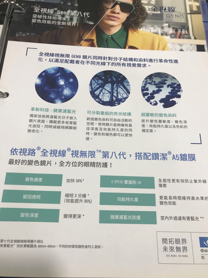 Xantia_L wrote:不一樣。你可以去問 ...(恕刪) 我剛剛問我朋友(開眼鏡行)他說全視線(變色片)要加藍光要訂製嗎?他說不用本身就有濾藍光(健康濾藍光)跟最新A5鍍膜,1.56可以做到800度,1.61可以做到1000度,有空看一下照片
