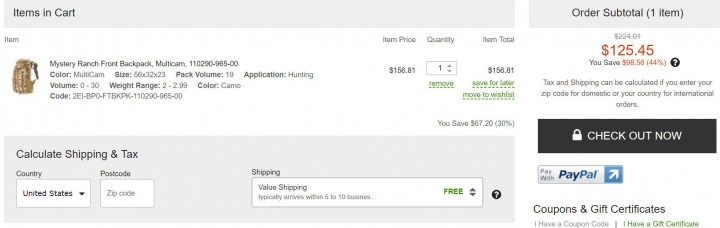 有水壺袋的迷彩後背包~只剩 4個降價了,輸入 July20 打 8折,變成 $125.45https://www.campsaver.com/mystery-ranch-front-backpack.html