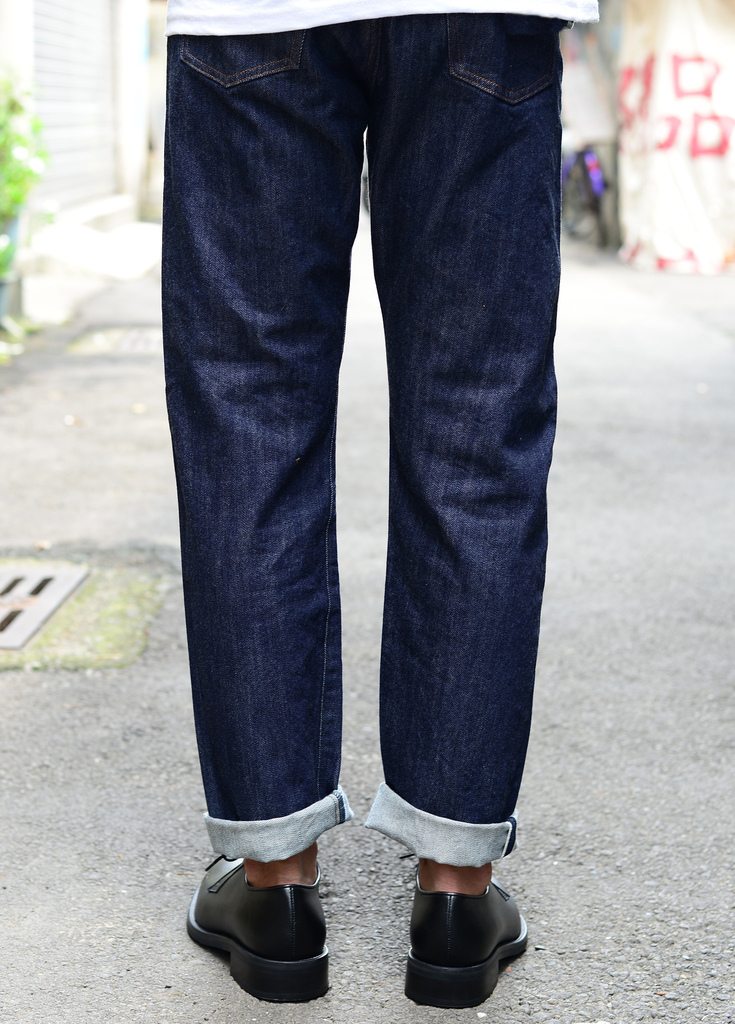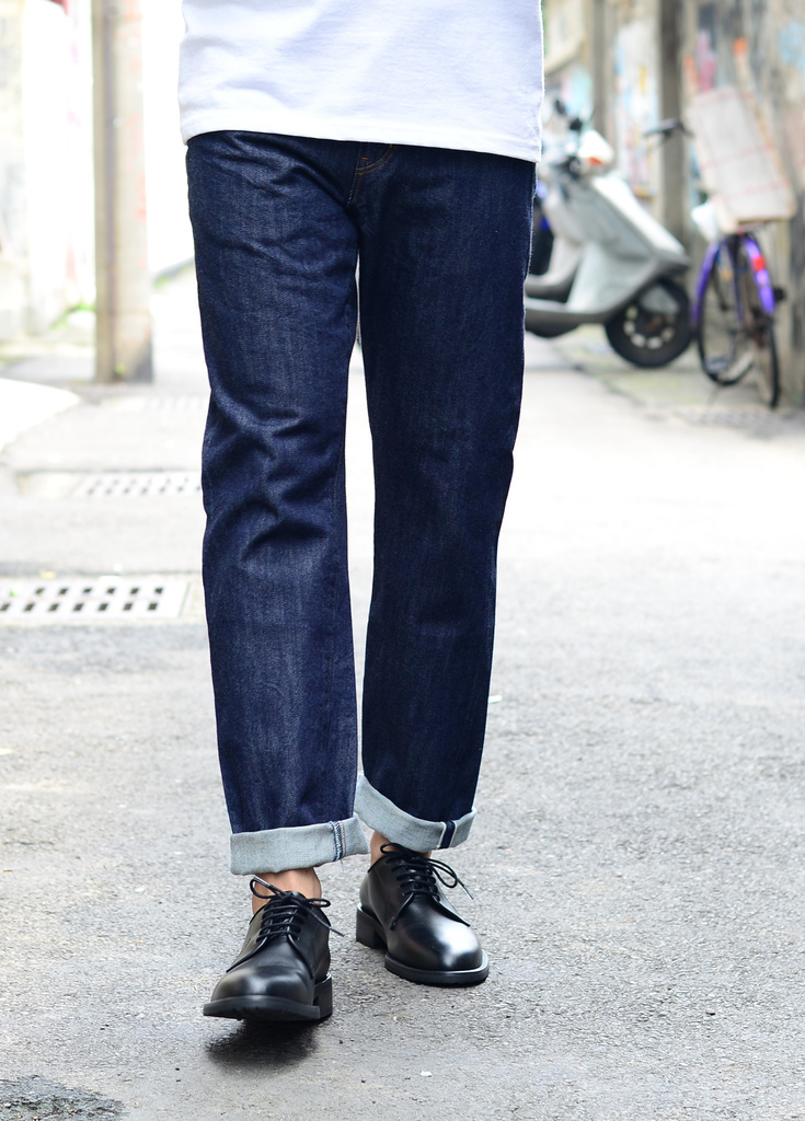 褲子全貌,小直筒的褲型,布料據廠商提供資料,是採用14oz的單寧布,因此相當厚實,